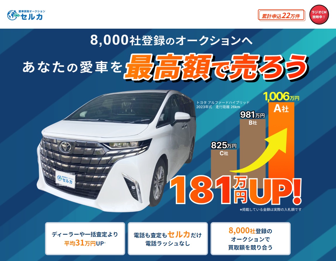 愛車買取オークション セルカは、たった1度の無料査定で、